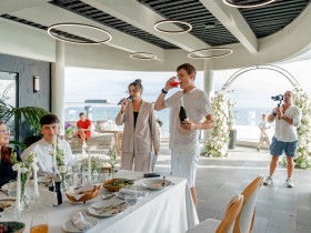 Свадьбу и церемонию было решено провести в г.Сочи, а сами прожить в Москве. Это была мечта нашей невесты. Организация занялась сама. Нашла лучшие специалисты. Праздник был обречен на успех. Все четко и организованно.